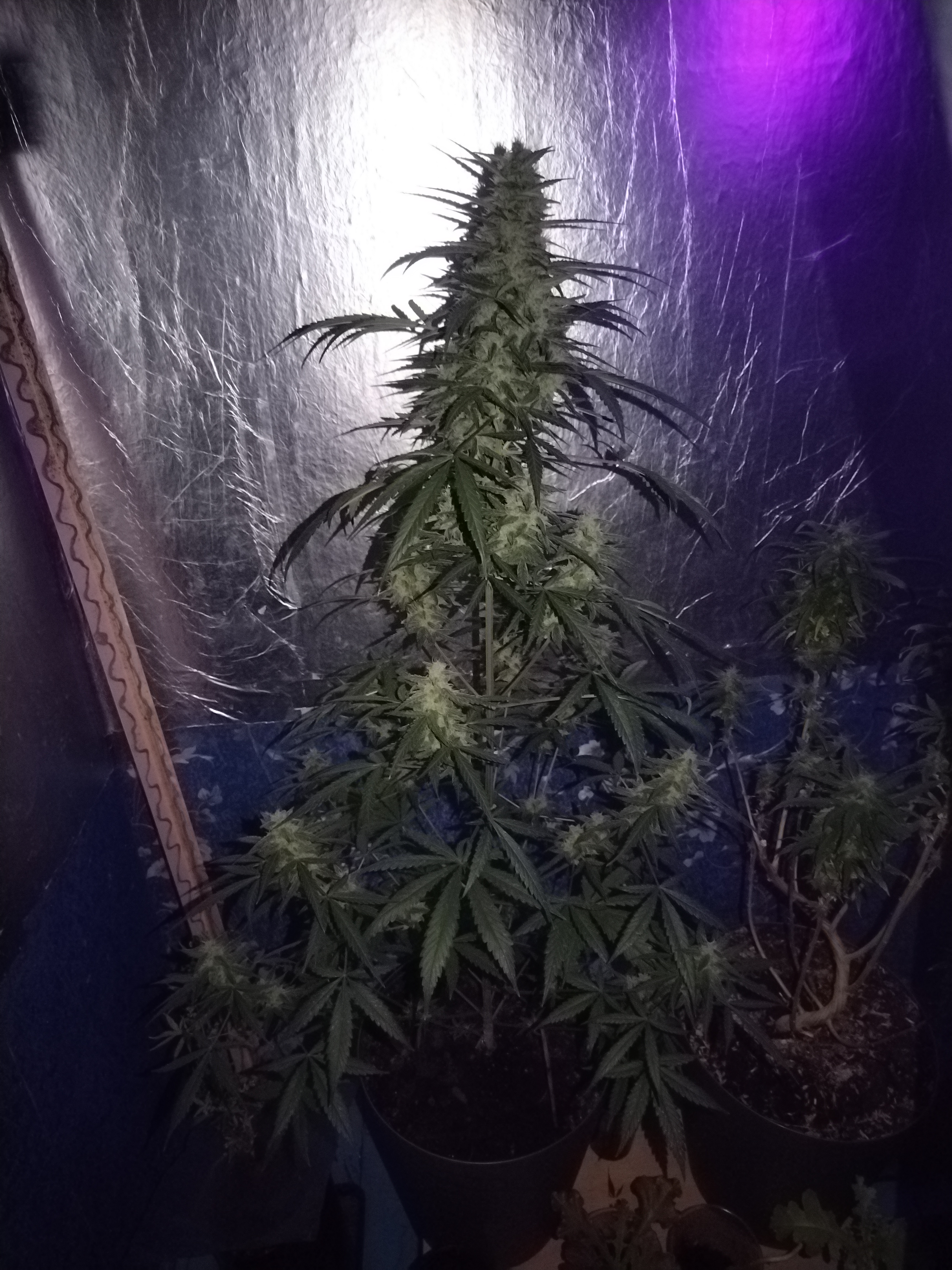 Пришло 2 семечка бонусом к Гагарину. Собрал свой первый гроубокс на 2 горшка, в один Гагарин посадил, в другой этот бонус. Бонус проклюнулся на 2 дня раньше. Растет как в описании, утром бокс откроешь для полива, а вечером уже не узнаешь-увеличивается в разы. Не прихотлив вообще! Когда достиг роста до половины между горшком и лампами, понял что высоты бокса ему не хватит ( высота бокса 1,5 метра) хотел сеткой рост уменьшить-пророс сквозь сетку, когда между центральной колой и лампой оставалось 20 см. подвязал ее проволокой и загнул на 90 градусов. А хрен там! Она изогнулась и опять вверх! Короче в боксе уже места не осталось, центральная кола и все отростки уперлись в лампы, загнулись и набухают шишками. Короче его проще вырастить, чем заставить не уродиться. И самое главное: сегодня этому чуду всего 38 дней и сидеть ему в горшке как минимум 17 дней, а нижние листья уже попробовал и очень остался доволен)))) И да, я совсем не спец в этих делах, это мой третий посев, и свет у меня вообще ни о чем получился-но ему всё ни по чём!!! Очень советую новичкам!!!! Кстати это мой первый отзыв чему либо в жизни-никогда и нигде ничего не писал. Но это чудо этого заслужило!!!!!!!!!!!!!